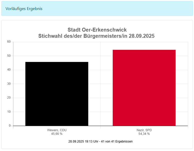 Wer wird der neue Bürgermeister in Oer-Erkenschwick? Vor der Stichwahl am 28.9. diskutieren wir in einer Livesendung mit den beiden Kandidaten. Stellen auch Sie Fragen. Ein Beitrag in der Stimberg Zeitung vom 18.09.2025 (Jürgen Bröker) zur Stichwahl und den beiden Kandidaten in der Wahlarena Was war das für ein spannender
